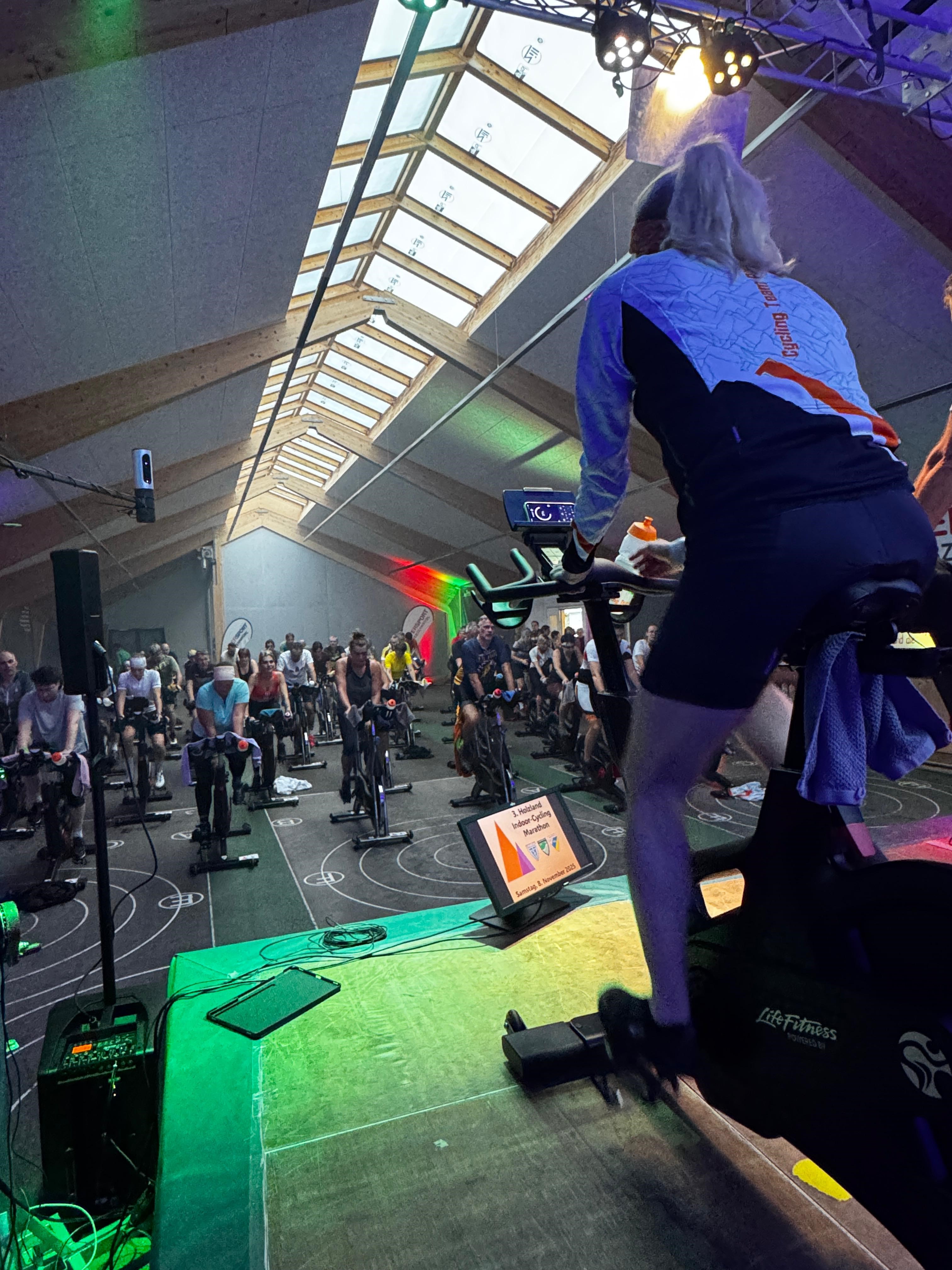 Um 13 Uhr fiel der Startschuss zu insgesamt 6 Stunden Indoor-Cycling - zu jeder vollen Stunde wechselten die Trainer ab und boten den Teilnehmern auf 37 IC-Rädern über den ganzen Nachmittag bis in den Abend ein abwechslungsreiches Programm. 14 Einzelfahrer absolvierten alle sechs Einheiten, die anderen Räder waren sog. Teamräder, d.h. 2-6 Leute teilten sich die Stunden auf und fuhren abwechselnd eine oder mehrere Einheiten 💪. So waren insgesamt 89 Starter gemeldet - und jedes Rad war zu jeder Stunde vollständig belegt! Die jüngste Teilnehmerin war 11 Jahre alt, der älteste 85 – Indoor-Cycling ist ein Sport für Jung und Alt 👏!