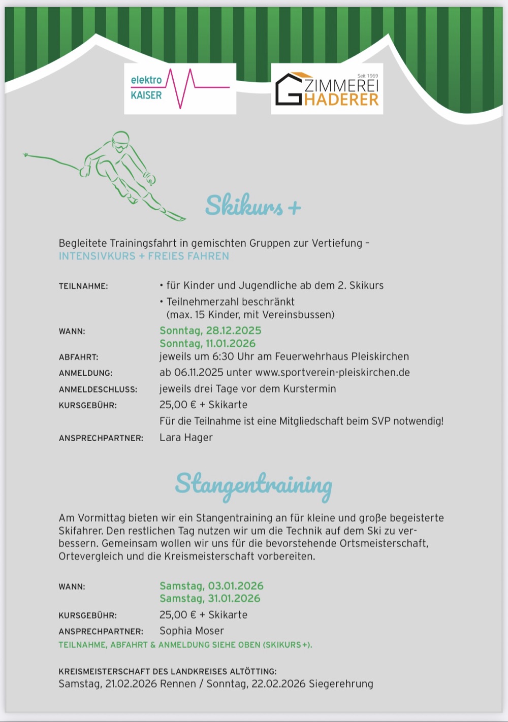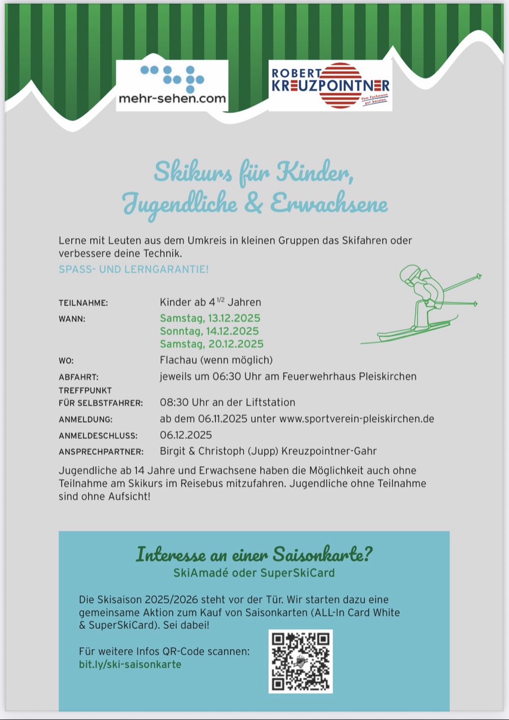 Skikurs für Kinder, Jugendliche und Erwachsene am 13./14. und 20. Dezember.